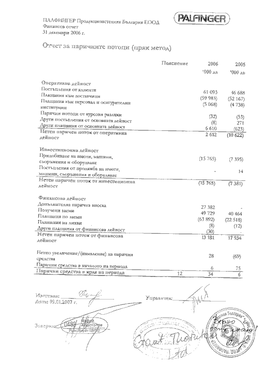 СПРАВКА ЗА ПАРИЧНИТЕ ПОТОЦИ ПО ПРЕКИЯ МЕТОД