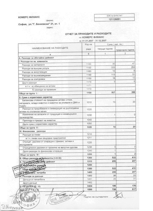 ОТЧЕТ ЗА ПРИХОДИТЕ И РАЗХОДИТЕ
