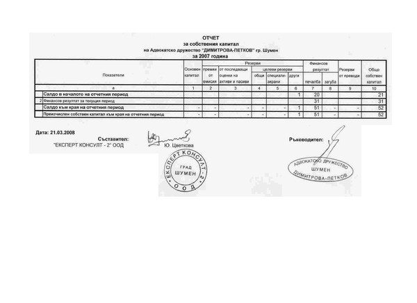 ОТЧЕТ ЗА СОБСТВЕНИЯ КАПИТАЛ