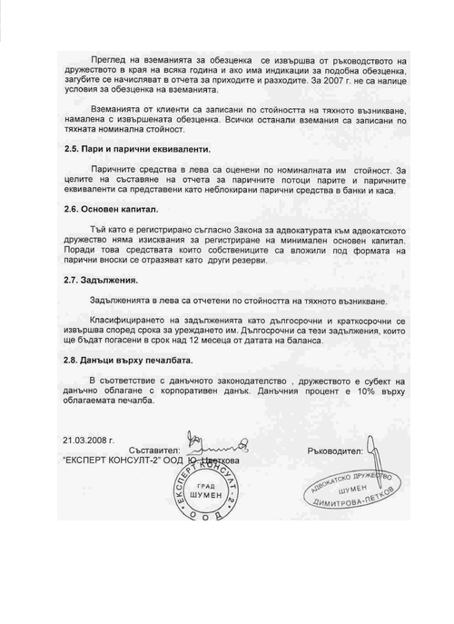 ПОЯСНЕНИЯ КЪМ ФИНАНСОВ ОТЧЕТ І