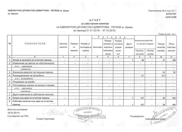 ОТЧЕТ ЗА СОБСТВЕНИЯ КАПИТАЛ