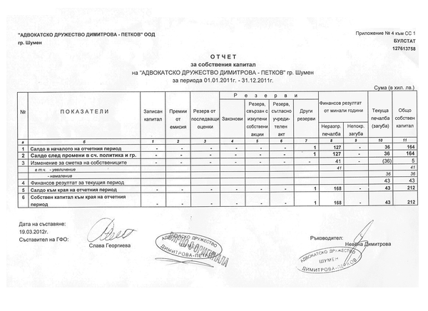 ОТЧЕТ ЗА СОБСТВЕНИЯ КАПИТАЛ