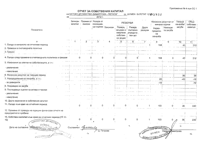 ОТЧЕТ ЗА СОБСТВЕНИЯ КАПИТАЛ