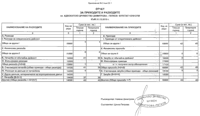 ОТЧЕТ ЗА ПРИХОДИТЕ И РАЗХОДИТЕ