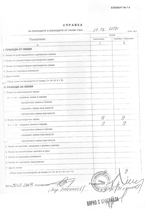 СПРАВКА ЗА ПРИХОДИТЕ И РАЗХОДИТЕ ОТ ЛИХВИ
