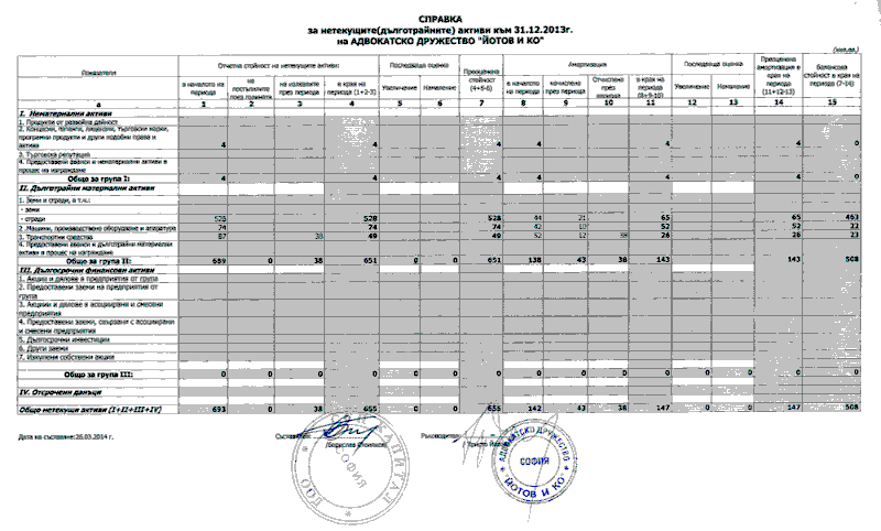 СПРАВКА ЗА НЕТЕКУЩИТЕ (ДЪЛГОТРАЙНИ) АКТИВИ