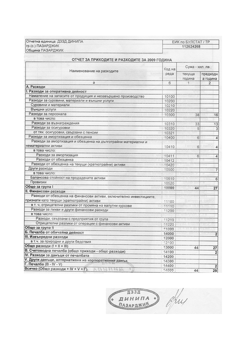 ОТЧЕТ ЗА ПРИХОДИТЕ И РАЗХОДИТЕ
