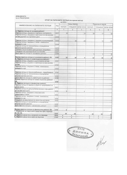 СПРАВКА ЗА ПАРИЧНИТЕ ПОТОЦИ ПО ПРЕКИЯ МЕТОД