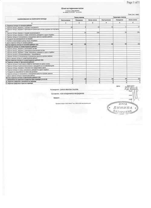 СПРАВКА ЗА ПАРИЧНИТЕ ПОТОЦИ ПО ПРЕКИЯ МЕТОД