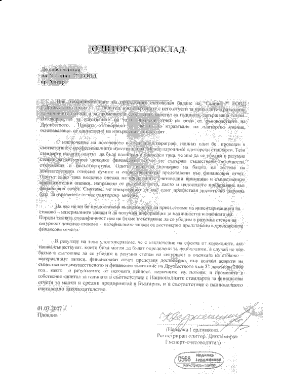 ОДИТОРСКИ ДОКЛАД