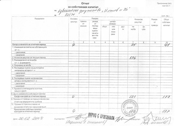 ОТЧЕТ ЗА СОБСТВЕНИЯ КАПИТАЛ