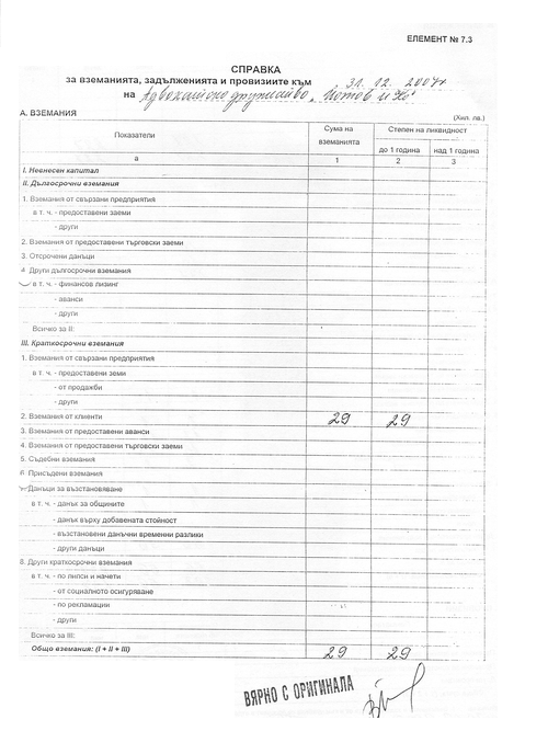 СПРАВКА ЗА НЕТЕКУЩИТЕ (ДЪЛГОТРАЙНИ) АКТИВИ