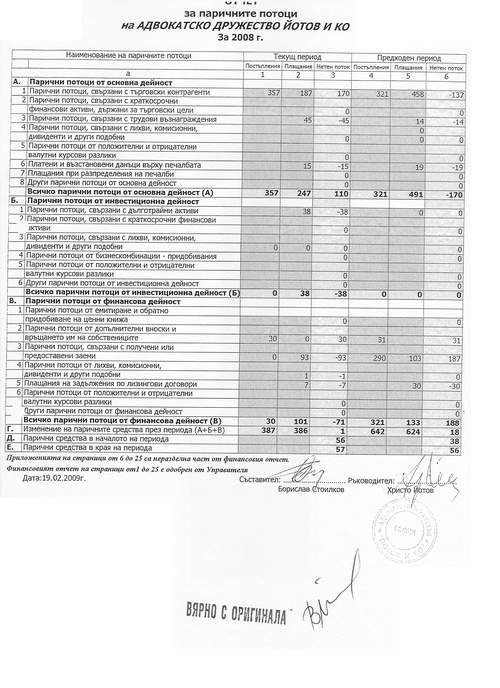 СПРАВКА ЗА ПАРИЧНИТЕ ПОТОЦИ ПО ПРЕКИЯ МЕТОД