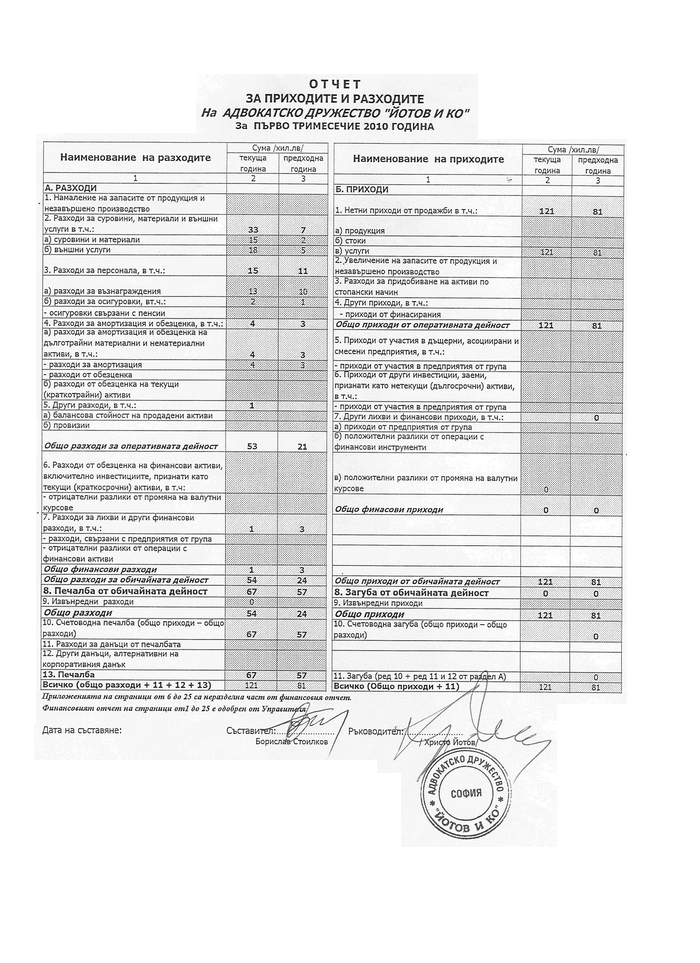 ОТЧЕТ ЗА ПРИХОДИТЕ И РАЗХОДИТЕ