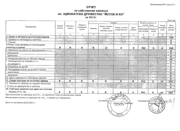 ОТЧЕТ ЗА СОБСТВЕНИЯ КАПИТАЛ