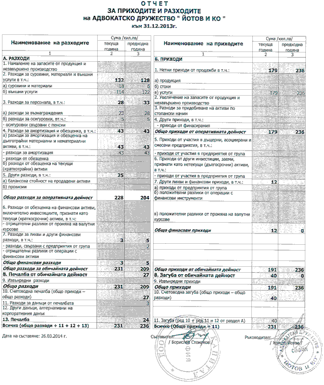 ОТЧЕТ ЗА ПРИХОДИТЕ И РАЗХОДИТЕ