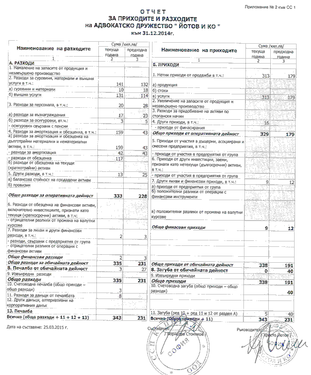 ОТЧЕТ ЗА ПРИХОДИТЕ И РАЗХОДИТЕ