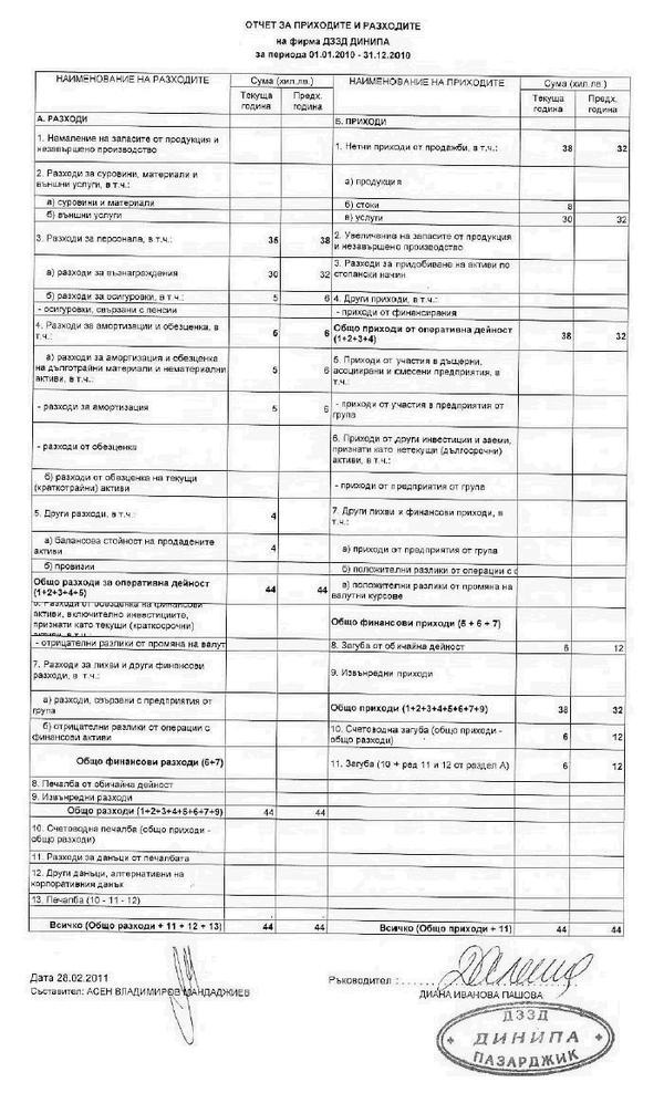 ОТЧЕТ ЗА ПРИХОДИТЕ И РАЗХОДИТЕ