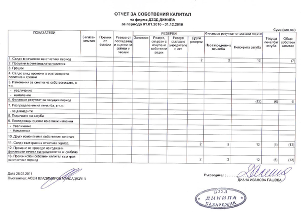 ОТЧЕТ ЗА СОБСТВЕНИЯ КАПИТАЛ