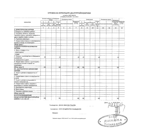 СПРАВКА ЗА НЕТЕКУЩИТЕ (ДЪЛГОТРАЙНИ) АКТИВИ