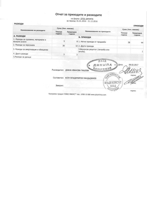 ОТЧЕТ ЗА ПРИХОДИТЕ И РАЗХОДИТЕ