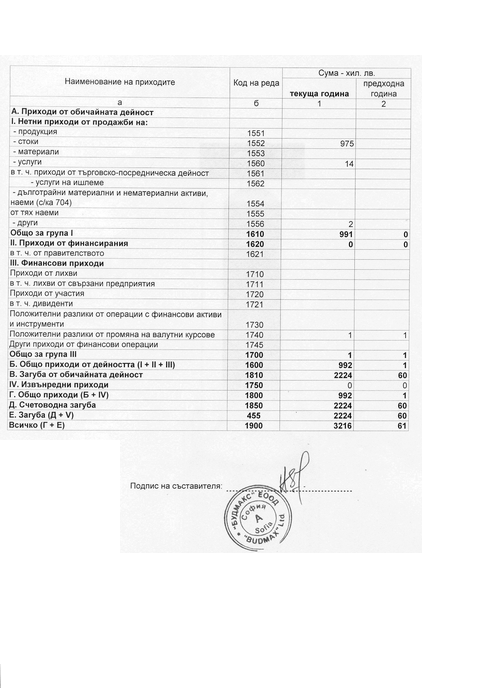 ОТЧЕТ ЗА ПРИХОДИТЕ И РАЗХОДИТЕ