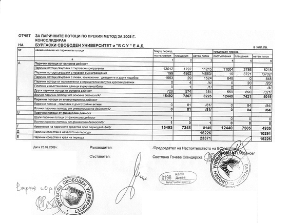 КОНСОЛИДИРАН ОТЧЕТ ЗА ПАРИЧНИТЕ ПОТОЦИ ПО ПРЕКИЯ МЕТОД