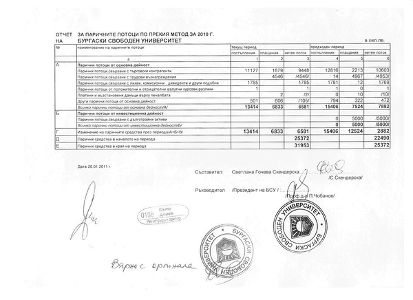 СПРАВКА ЗА ПАРИЧНИТЕ ПОТОЦИ ПО ПРЕКИЯ МЕТОД