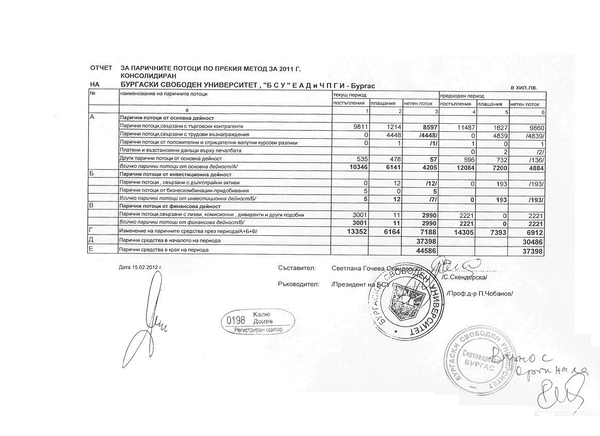 КОНСОЛИДИРАНА СПРАВКА ЗА ПАРИЧНИТЕ ПОТОЦИ ПО ПРЕКИЯ МЕТОД