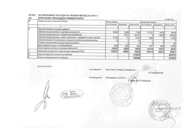 СПРАВКА ЗА ПАРИЧНИТЕ ПОТОЦИ ПО ПРЕКИЯ МЕТОД