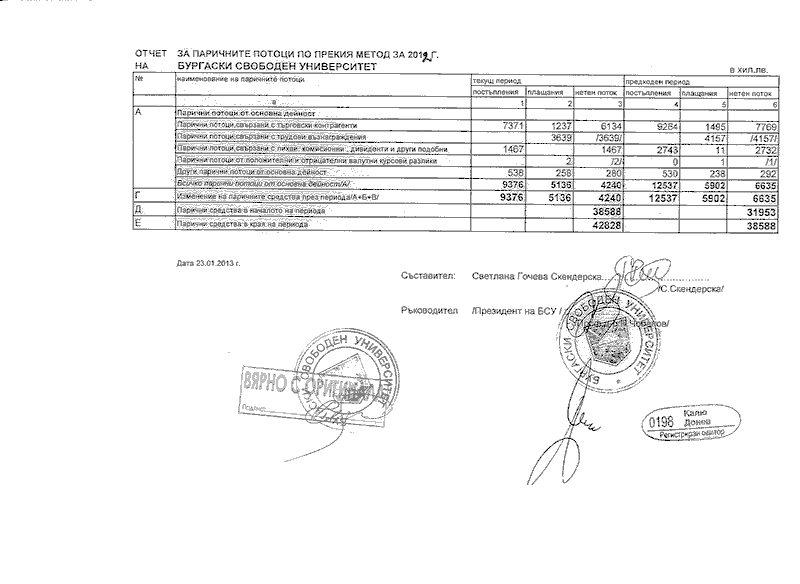 СПРАВКА ЗА ПАРИЧНИТЕ ПОТОЦИ ПО ПРЕКИЯ МЕТОД