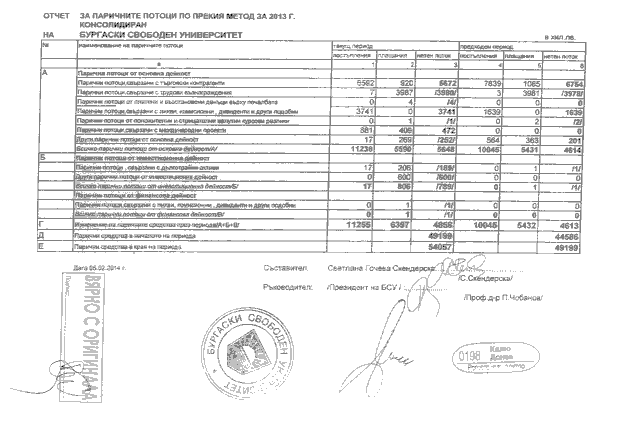 КОНСОЛИДИРАН ОТЧЕТ ЗА ПАРИЧНИТЕ ПОТОЦИ ПО ПРЕКИЯ МЕТОД