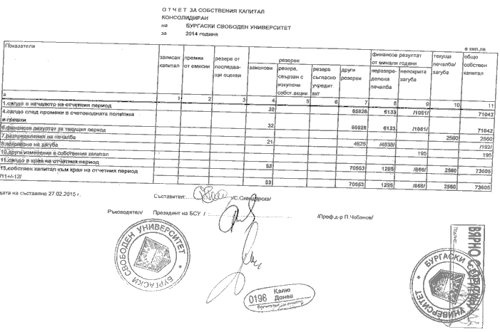 КОНСОЛИДИРАН ОТЧЕТ ЗА СОБСТВЕНИЯ КАПИТАЛ