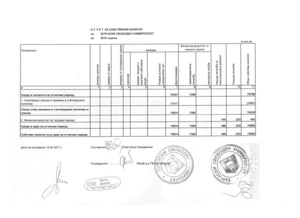 ОТЧЕТ ЗА СОБСТВЕНИЯ КАПИТАЛ