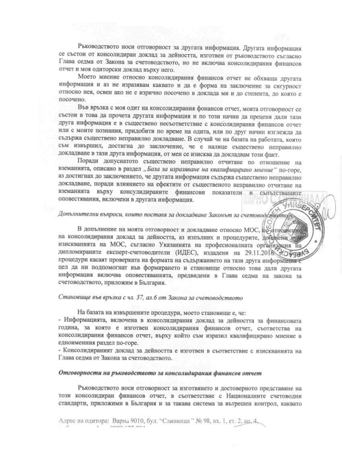 КОНСОЛИДИРАН ОДИТОРСКИ ДОКЛАД