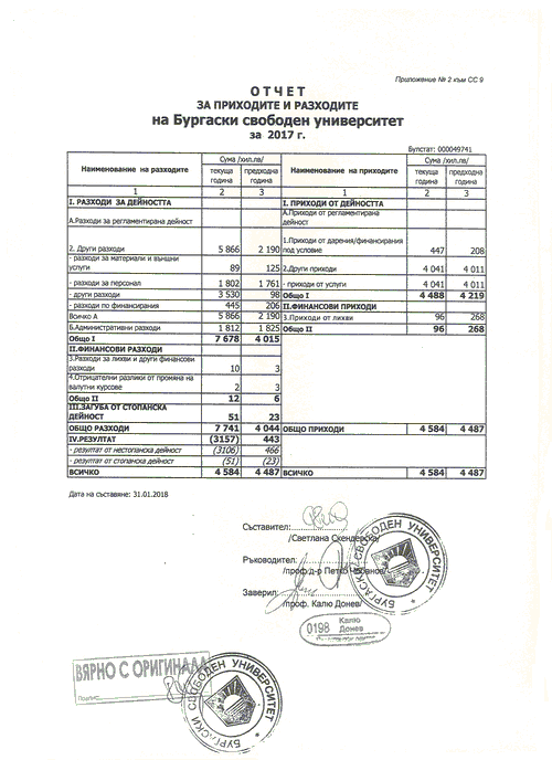 ОТЧЕТ ЗА ПРИХОДИТЕ И РАЗХОДИТЕ