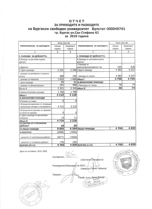 ОТЧЕТ ЗА ПРИХОДИТЕ И РАЗХОДИТЕ