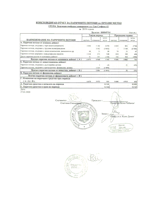 КОНСОЛИДИРАН ОТЧЕТ ЗА ПАРИЧНИТЕ ПОТОЦИ ПО ПРЕКИЯ МЕТОД