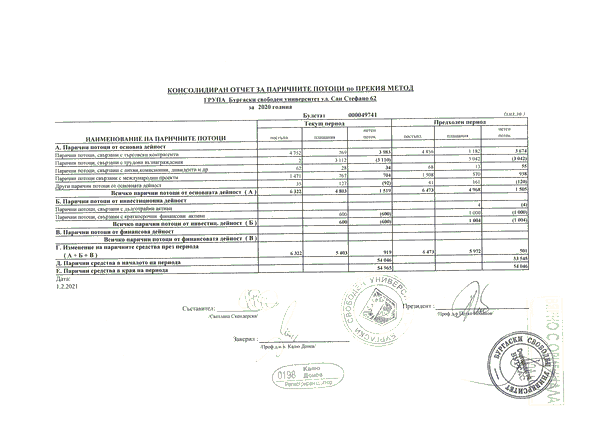КОНСОЛИДИРАН ОТЧЕТ ЗА ПАРИЧНИТЕ ПОТОЦИ ПО ПРЕКИЯ МЕТОД