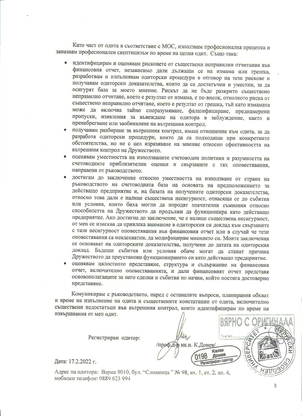 ОДИТОРСКИ ДОКЛАД