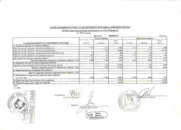КОНСОЛИДИРАН ОТЧЕТ ЗА ПАРИЧНИТЕ ПОТОЦИ ПО ПРЕКИЯ МЕТОД