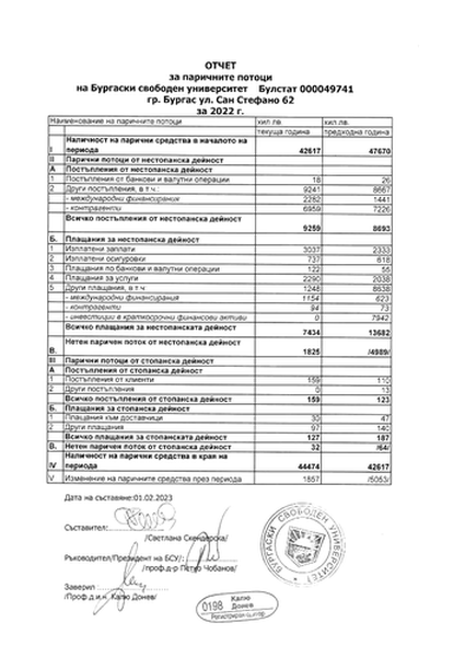 ОТЧЕТ ЗА ПАРИЧНИТЕ ПОТОЦИ