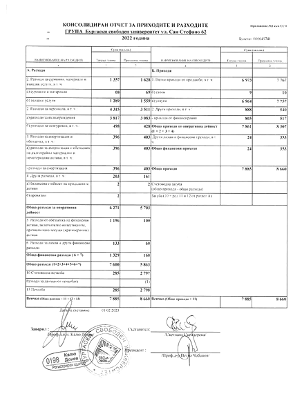КОНСОЛИДИРАН ОТЧЕТ ЗА ПРИХОДИТЕ И РАЗХОДИТЕ