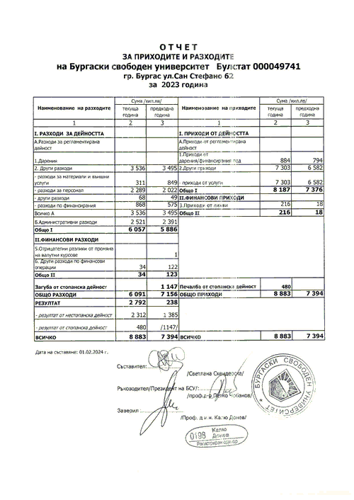 ОТЧЕТ ЗА ПРИХОДИТЕ И РАЗХОДИТЕ