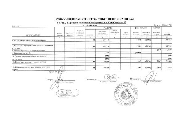 КОНСОЛИДИРАН ОТЧЕТ ЗА СОБСТВЕН КАПИТАЛ