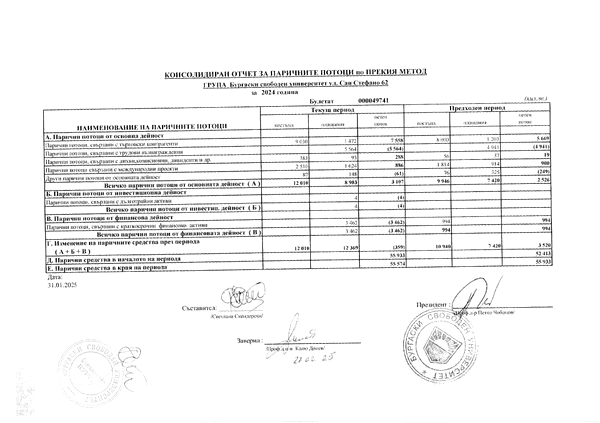 КОНСОЛИДИРАН ОТЧЕТ ЗА ПАРИЧНИТЕ ПОТОЦИ ПО ПРЕКИЯ МЕТОД