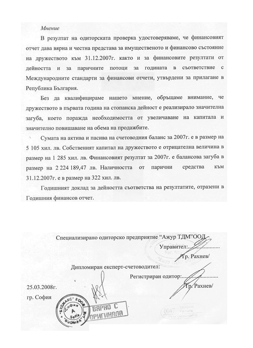 ОДИТОРСКИ ДОКЛАД