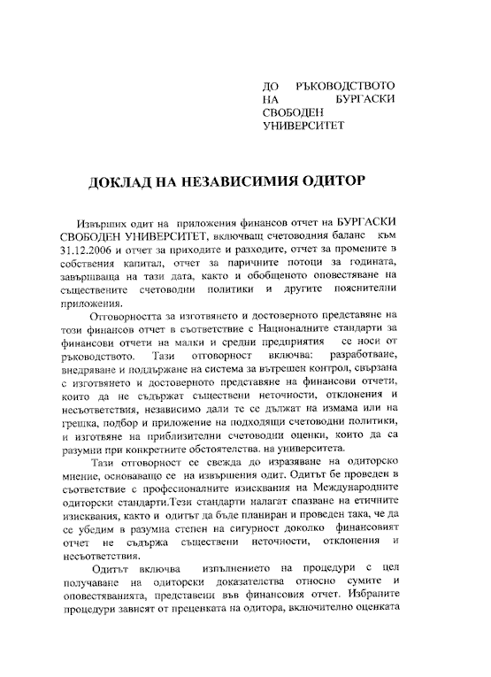 • ОДИТОРСКИ ДОКЛАД