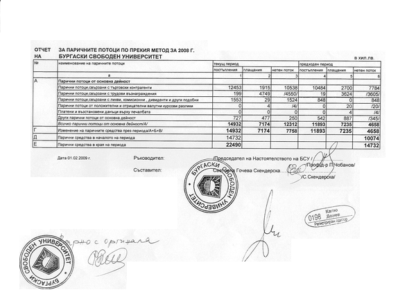 СПРАВКА ЗА ПАРИЧНИТЕ ПОТОЦИ ПО ПРЕКИЯ МЕТОД