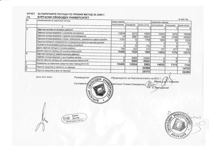 СПРАВКА ЗА ПАРИЧНИТЕ ПОТОЦИ ПО ПРЕКИЯ МЕТОД